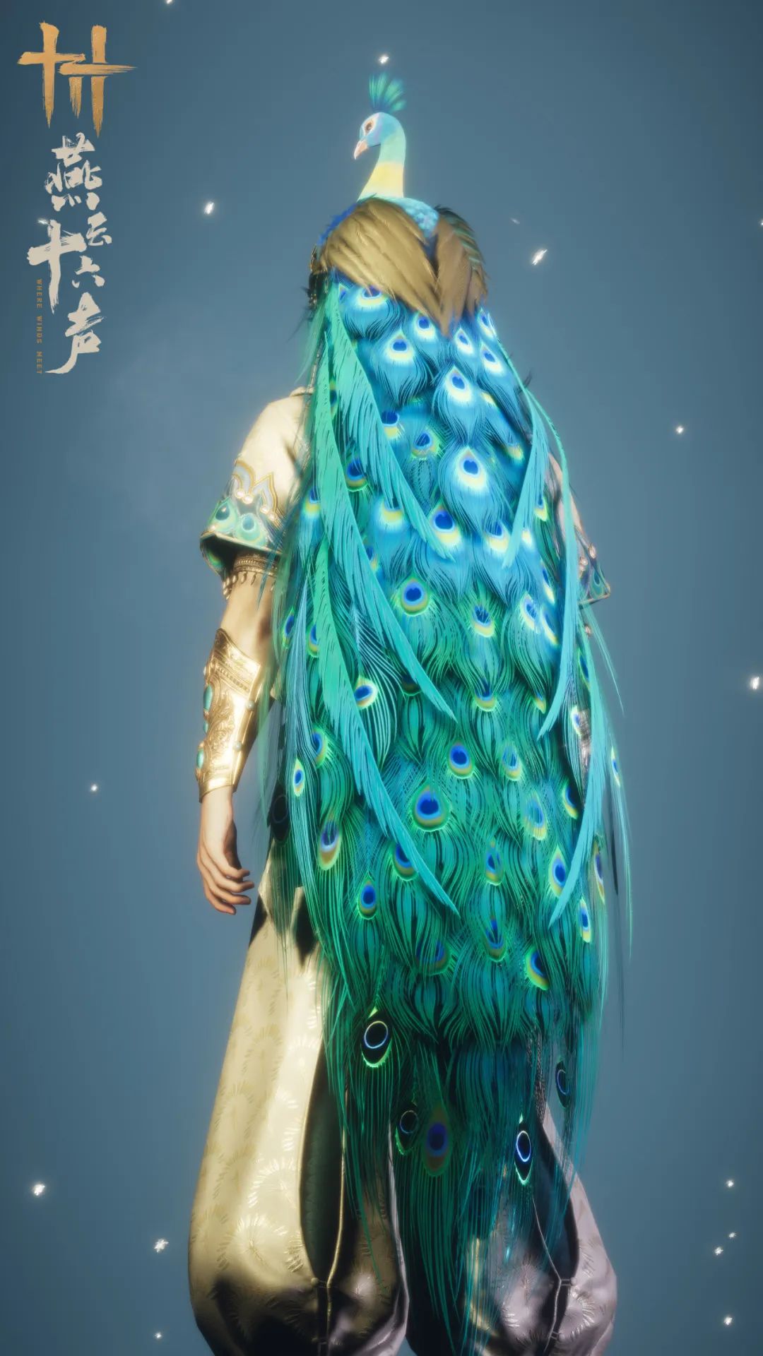 侧影顾盼间,羽尾随之摇曳摆动,犹如孔雀缓缓展开尾屏,伴着清风翩然起舞。行走江湖有孔雀相伴,举手投足间皆添了几分翩然雅致。