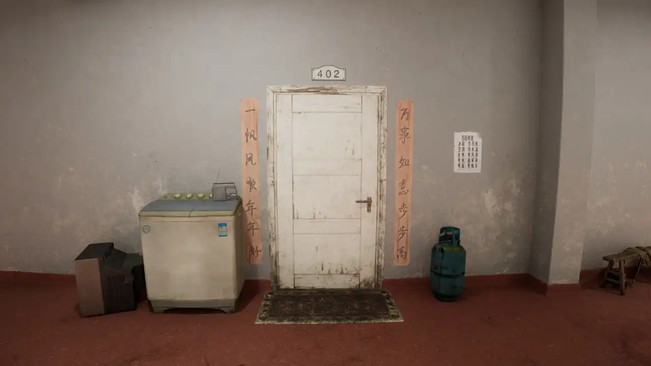 在场景设计上,玩家将在四楼的走廊上开启一段找异常之旅,而左右四户住户的大门,则是我们需要主要注意的地方。
