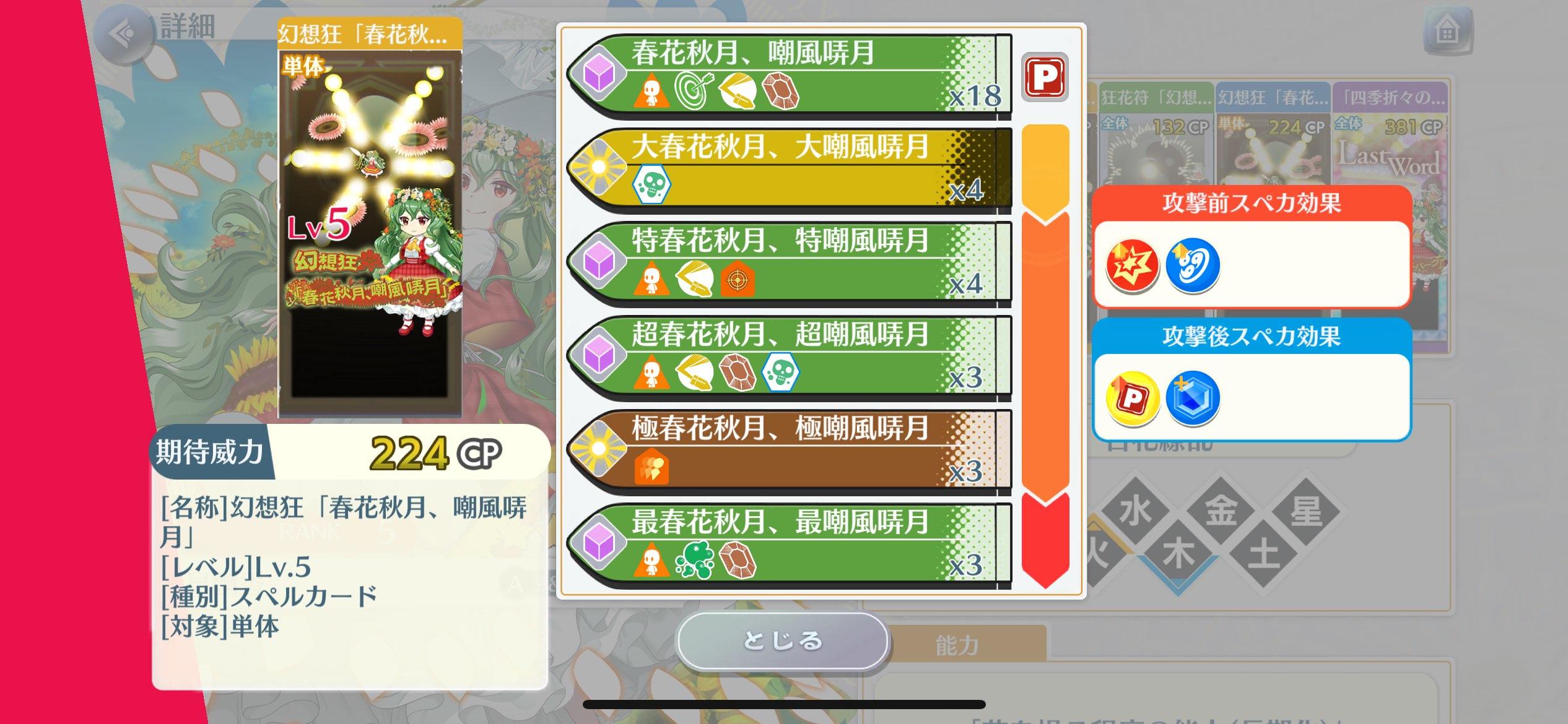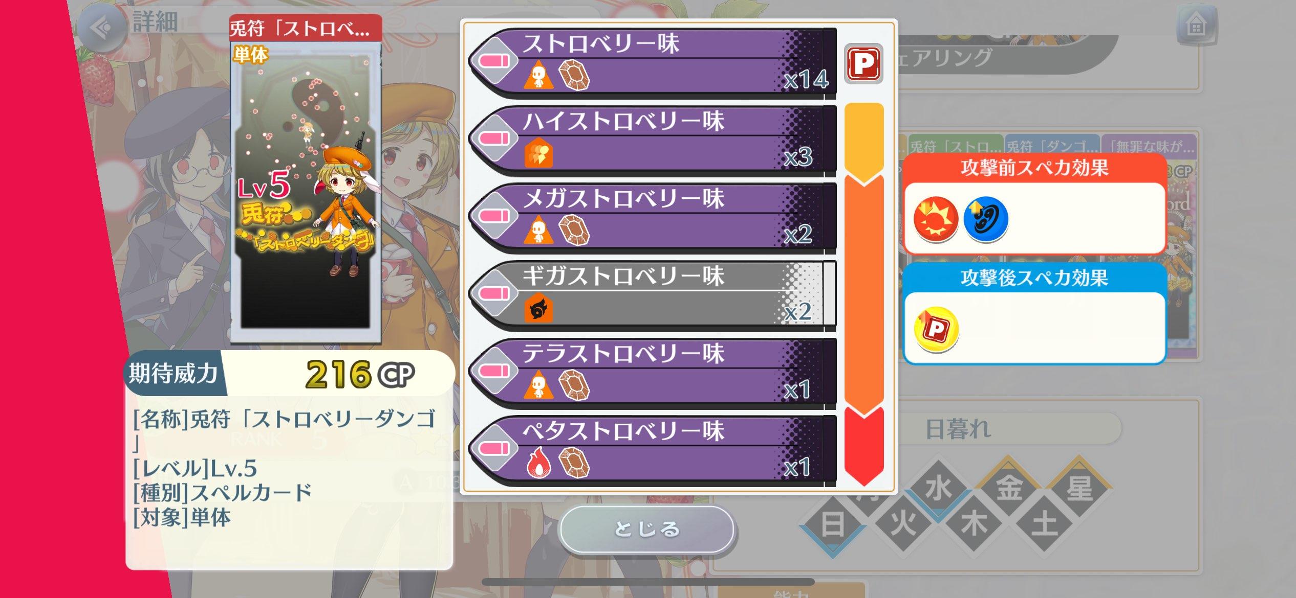 特攻:妖怪、妖精、人类、兔、异变解决者、恶魔、人偶、魔法使、音乐家,就1段有妖怪特攻,