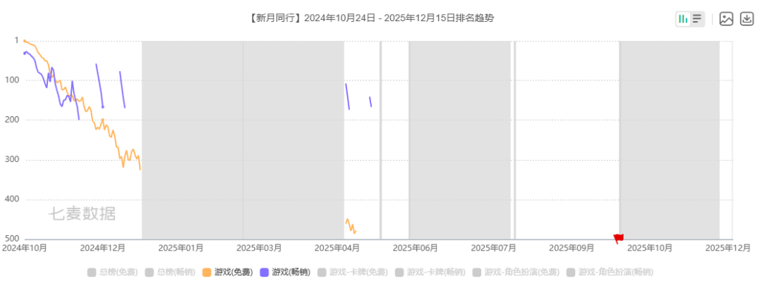 后来游戏于2024年10月24日上线,最高冲到过iOS游戏免费榜第1名和游戏畅销榜第27名,但随后便快速下滑,不久就被清榜了。