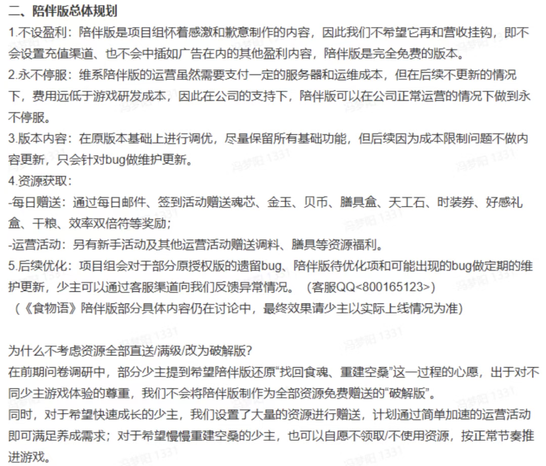 所以在这几年,有越来越多的产品会选择相对体面地死去——比如去年停运的《食物语》,后来上线了不设置盈利内容的陪伴版,投入一些资源补全了主线剧情及配音,也承诺了在正常运营情况下永不停服。