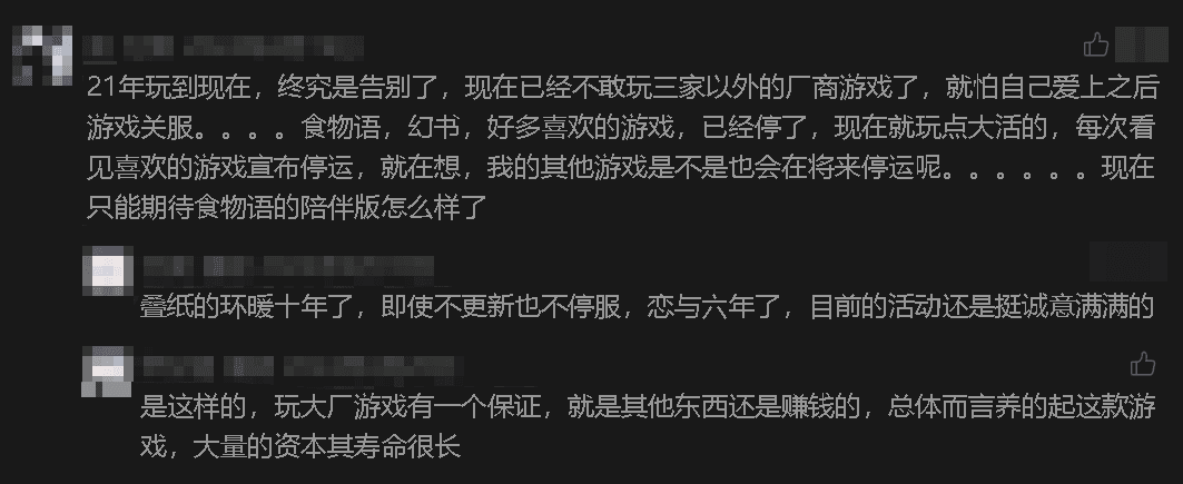 某二游大厂中层曾说,他们的第一款游戏之所以不停服,就是为了让玩家知道玩这家公司的游戏,自己的利益永远能得到保证;而对于失败的团队来说,在玩家对厂商越来越敌视,越来越不信任的大环境下,用诚意来对抗这种“赛博案底”,说不定也会是团队未来东山再起的资本。