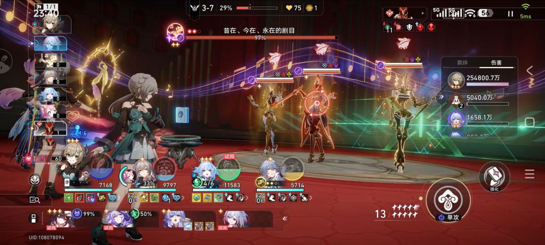 记忆主是开局启动青雀和增加容错和爆发,但是总伤提升比较一般(我截图带记忆主第一轮普攻打3直接带走一面,但是后续乏力)。