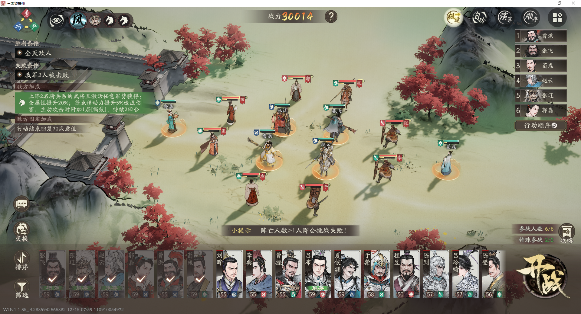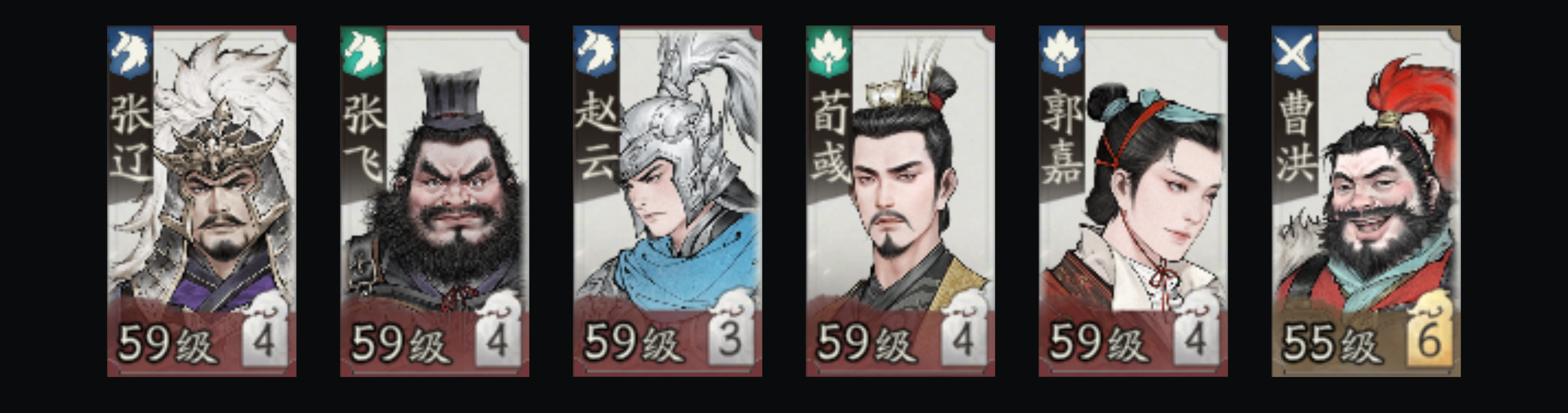 张辽、张飞、赵云、荀彧、郭嘉、曹洪