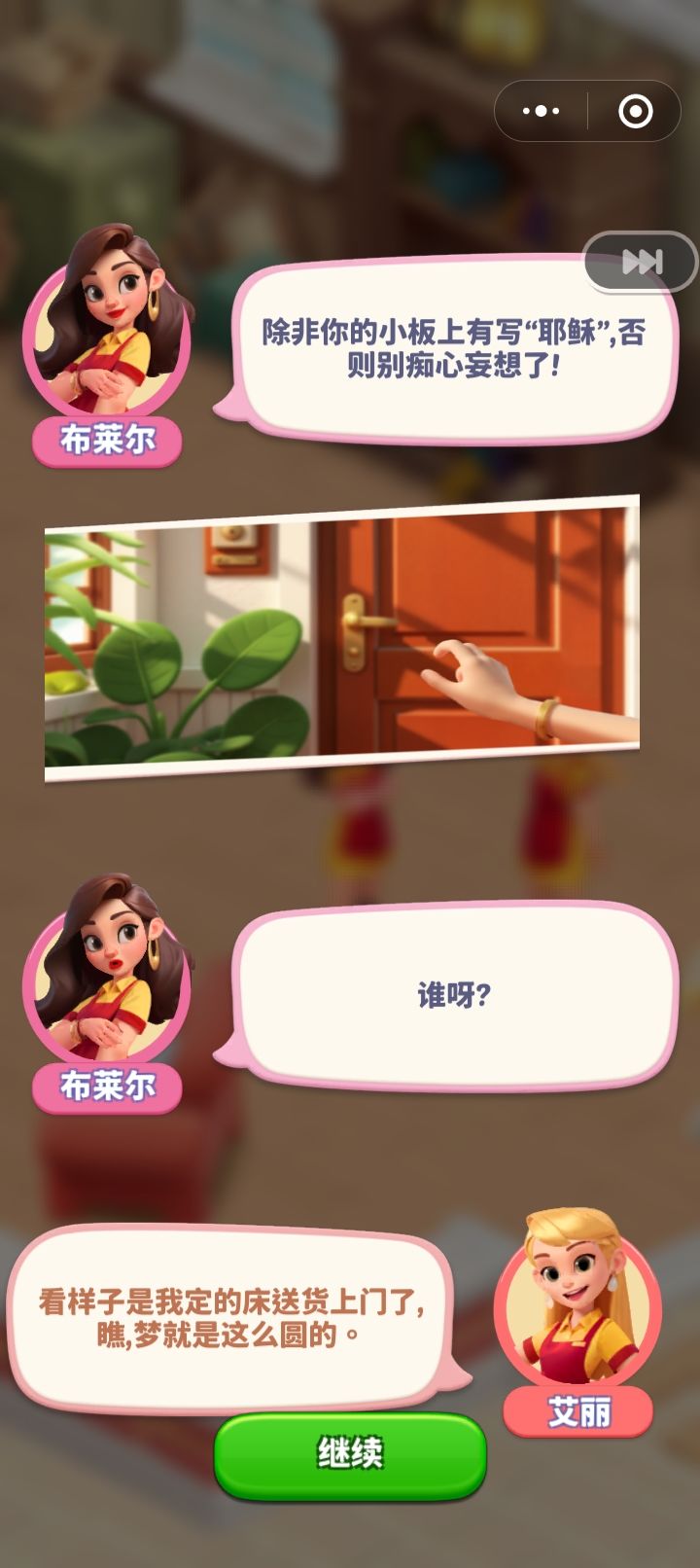 合合梦幻岛游戏的一段对话场景。