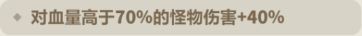 适配剑仙,剑仙本身对生命高于50%的怪物有40%的增伤,该图腾能进一步强化对高血怪物的输出能力,搭配满血增伤、暴击率、满血暴击能打出一个高额的伤害。