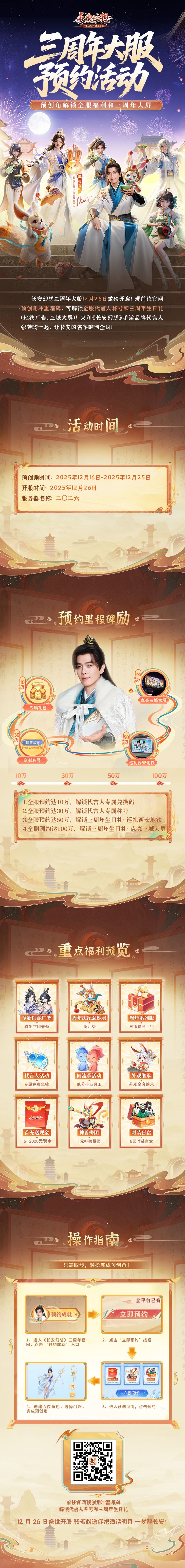 长安幻想三周年十万人系列大服福利拉满!12 月 26 日盛世开服,张若昀邀你把酒话明月,一梦醉长安!