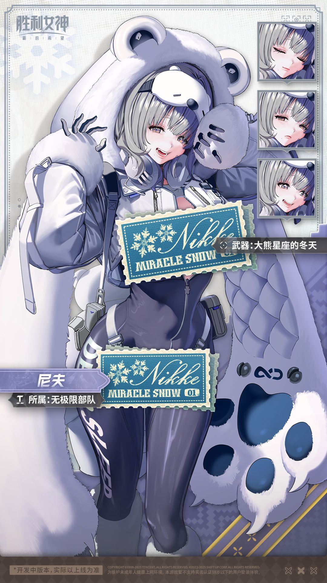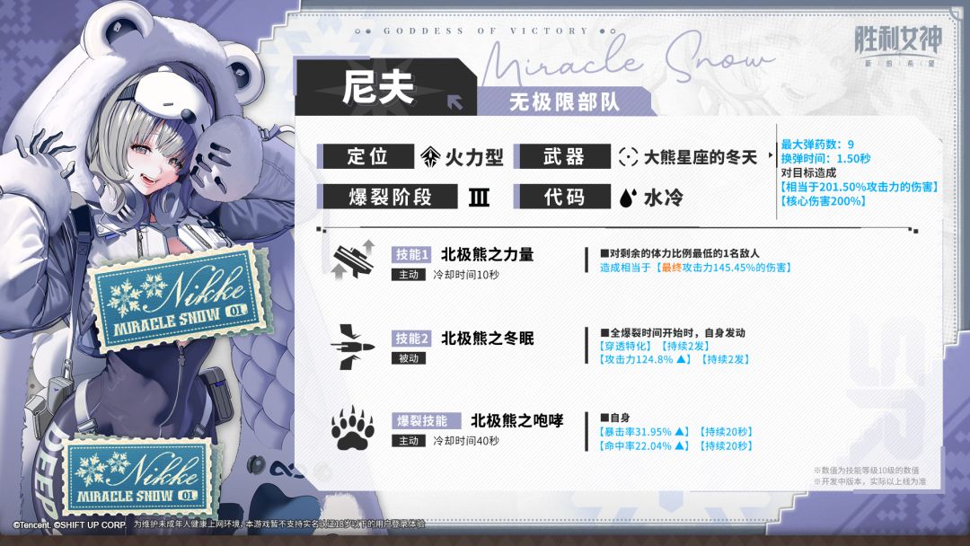 隶属于无极限部队,四处寻找北极熊的妮姬。