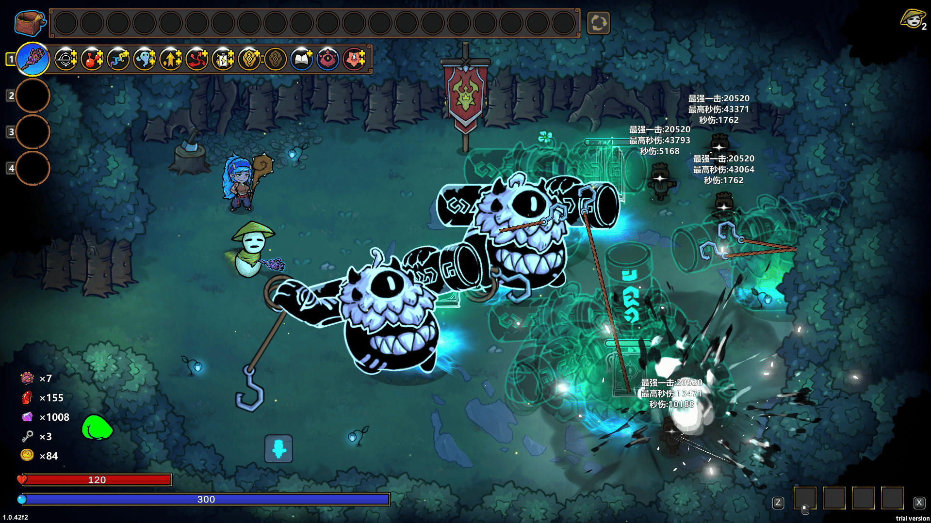 所以我们的思路就是,只需要一个大范围或是高频率的伤害,不需要伤害本身多高,其任务就是给怪物挂上坍缩的debuff。