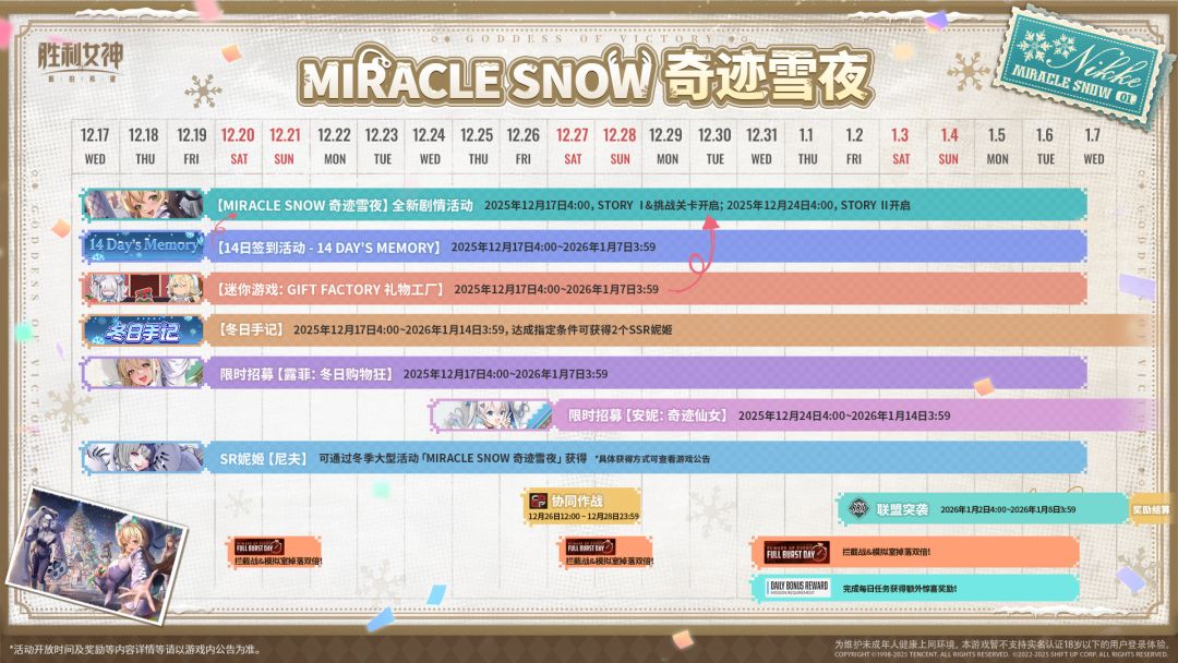 《胜利女神:新的希望》全新活动「MIRACLE SNOW 奇迹雪夜」将于12月17日上线!活动更新内容与日程已全面收录,请指挥官查收本次活动日历!