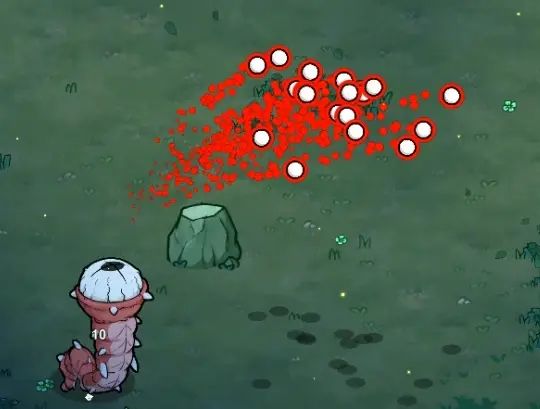攻击方式二:站定,压缩身体,同时伴有肚子咕噜咕噜叫音效,会像前往喷射出大量弹幕。