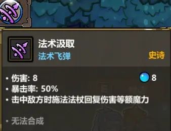 击中敌方时施法法杖回复伤害等额魔力,也就是说,当该法术命中敌人时,伤害为8,暴击为16,如果是8则回复8点蓝量,如果是16则回复16点蓝量。
