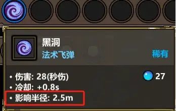 影响半径,当法术带影响半径时,则说明该法术为范围伤害,例如黑洞,范围为2.5m