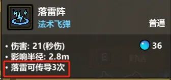 可传导3次,我们直接以截图为例,可以看到落雷只覆盖了1个目标,但是伤害会发生传导,也就说,落雷可以同时攻击3名敌人。