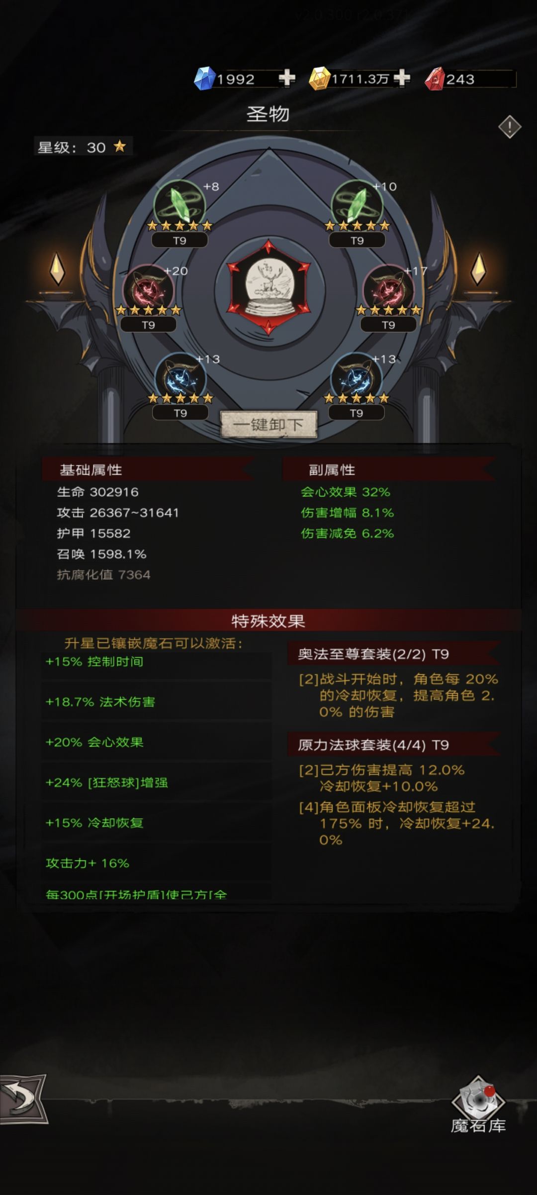 ,四神火如果没有9星红神火可以用噩梦之力,附魔繁音必须带)圣物:原力法球(2),奥法至尊(4)