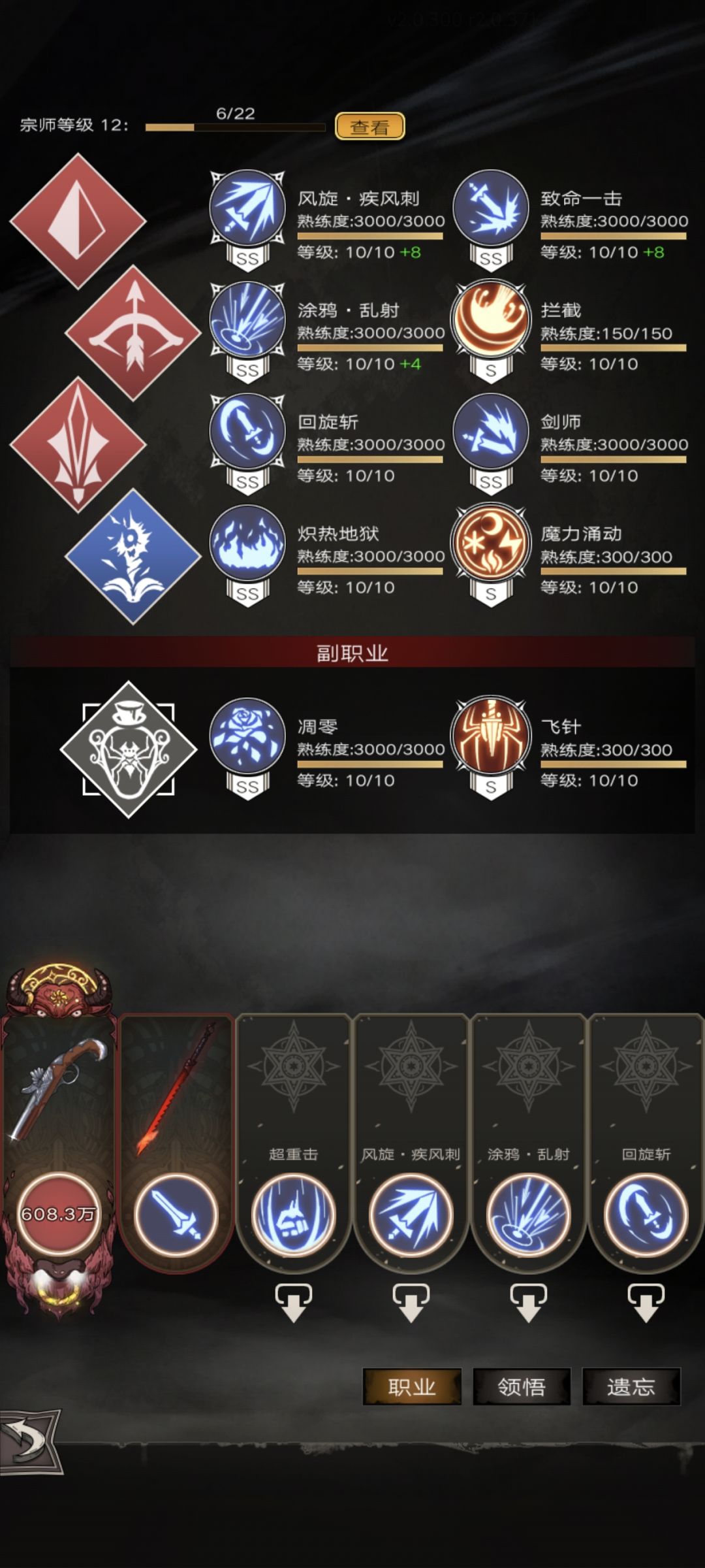 技能组:回旋斩,乱射,疾风刺,超重击(这个换什么都行,链钩伤害更高但是容易拉进距离)