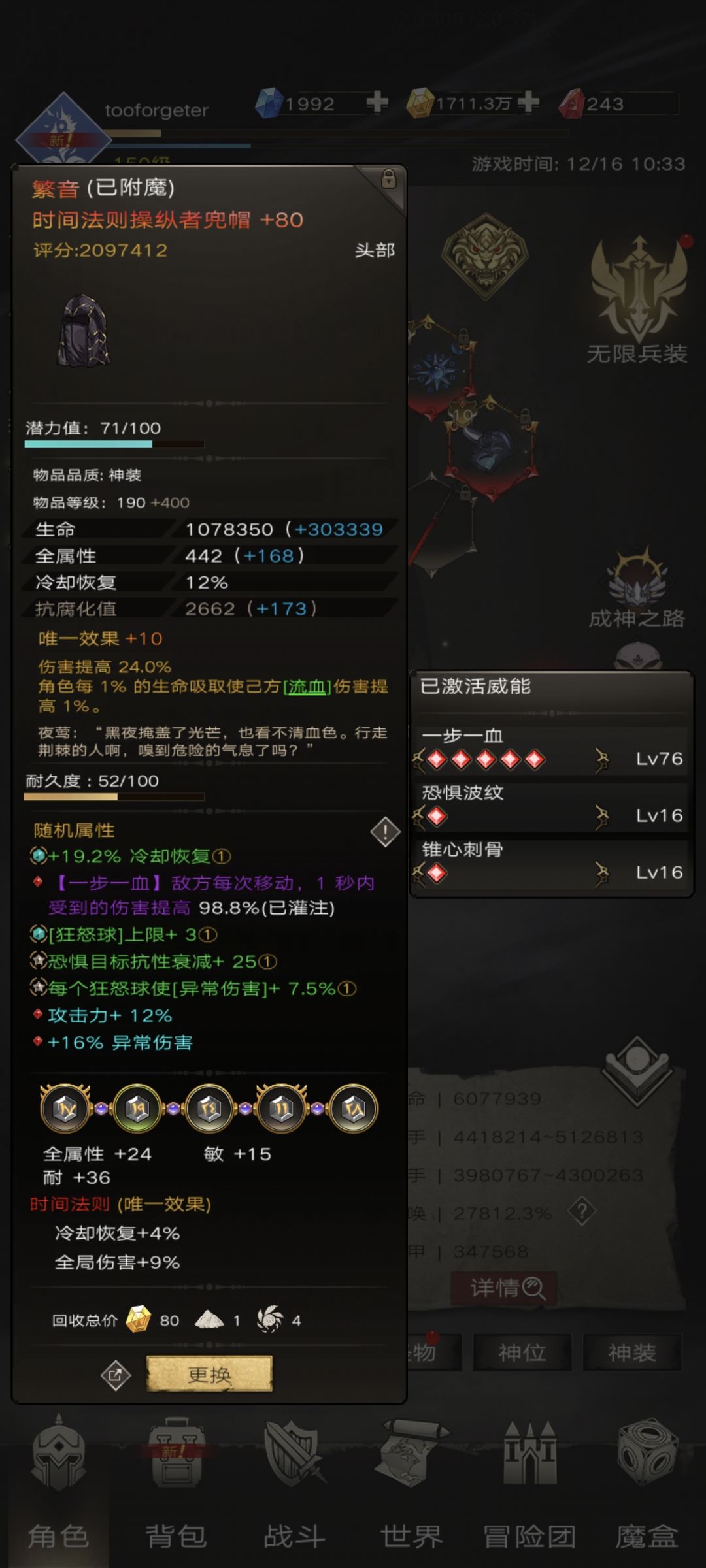 附魔:瘟疫(4),女巫的回响(可替),繁音,破风之锥,元素奏鸣