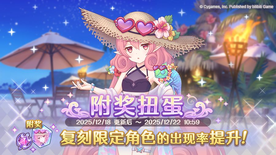 在附奖扭蛋中,期间限定角色「似似花(夏日)」的出现概率将进行提升!此外,还可获得额外奖品报酬。