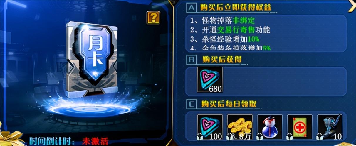 月卡堪称游戏中性价比之王!购买后不仅能解锁装备非绑定权限,打到的极品装备可自由交易,摆摊售卖赚取海量资源,实现"打宝致富" ;更能享受经验加成与特权福利,无论是刷本还是挂机,都能快人一步。68即可解锁全周期收益,零氪玩家也能通过交易缩小与氪金大佬的差距。