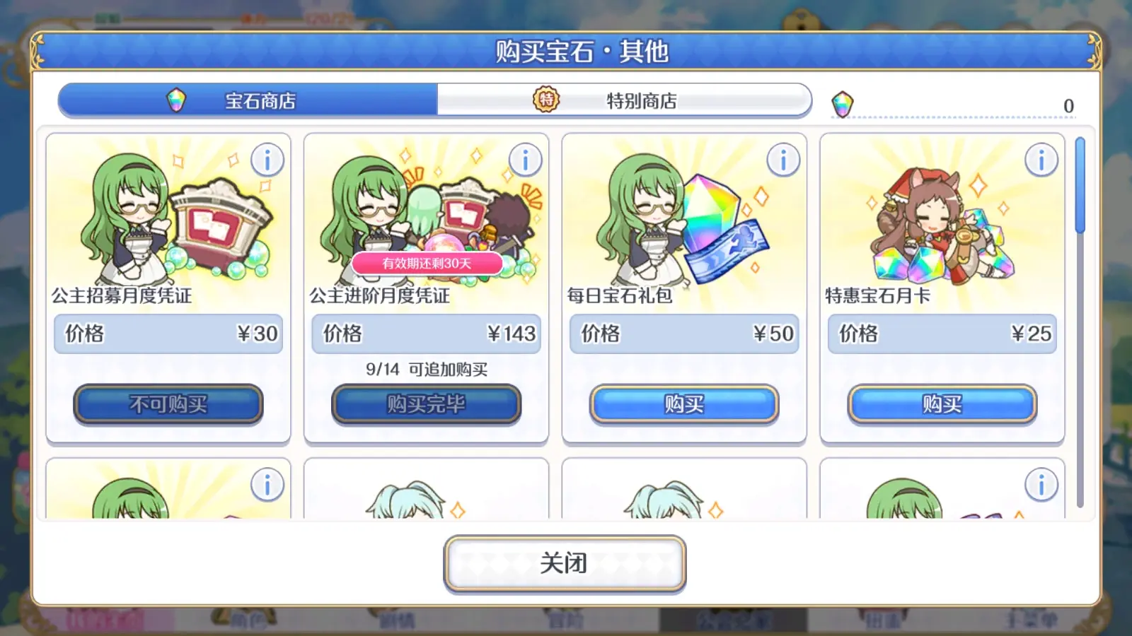 4、关于「公主招募月度凭证」与「公主进阶月度凭证」的相关内容,请通过宝石商店对应商品画面中的「信息」按钮进行确认。