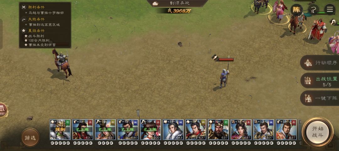 开局貂蝉必出,曹操可以替换为曹洪,至少给马超加1的移动