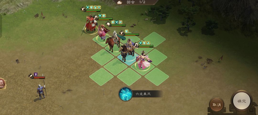 曹操在很远的位置,我们需要靠马超大招不断击杀小兵再动实现一回合追上曹操!