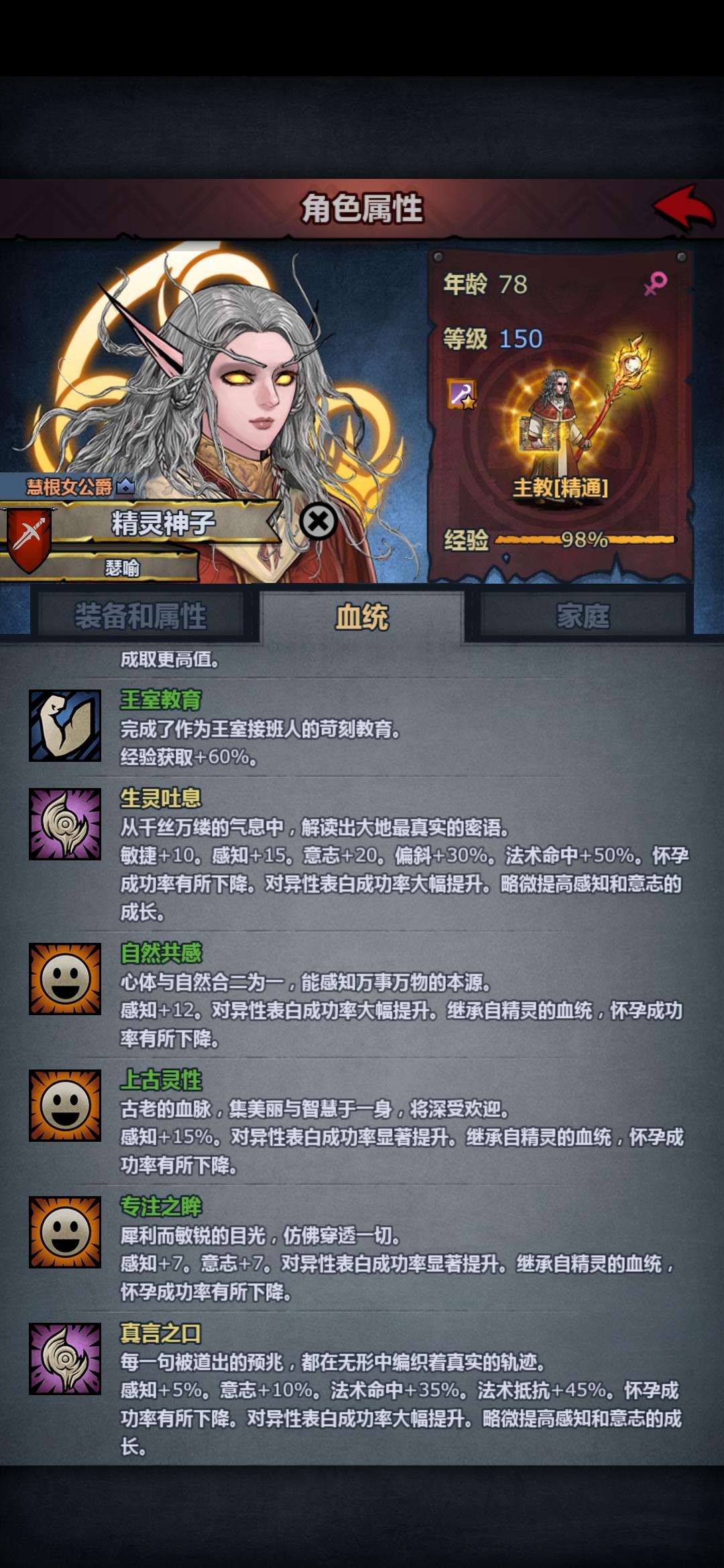 精灵神子的神特再加85%命中(神特命中百分比没在面板上显示),成长好一点。学校学好一点,基本上能超泰勒斯100%命中,稳定吃精通意志增伤50%