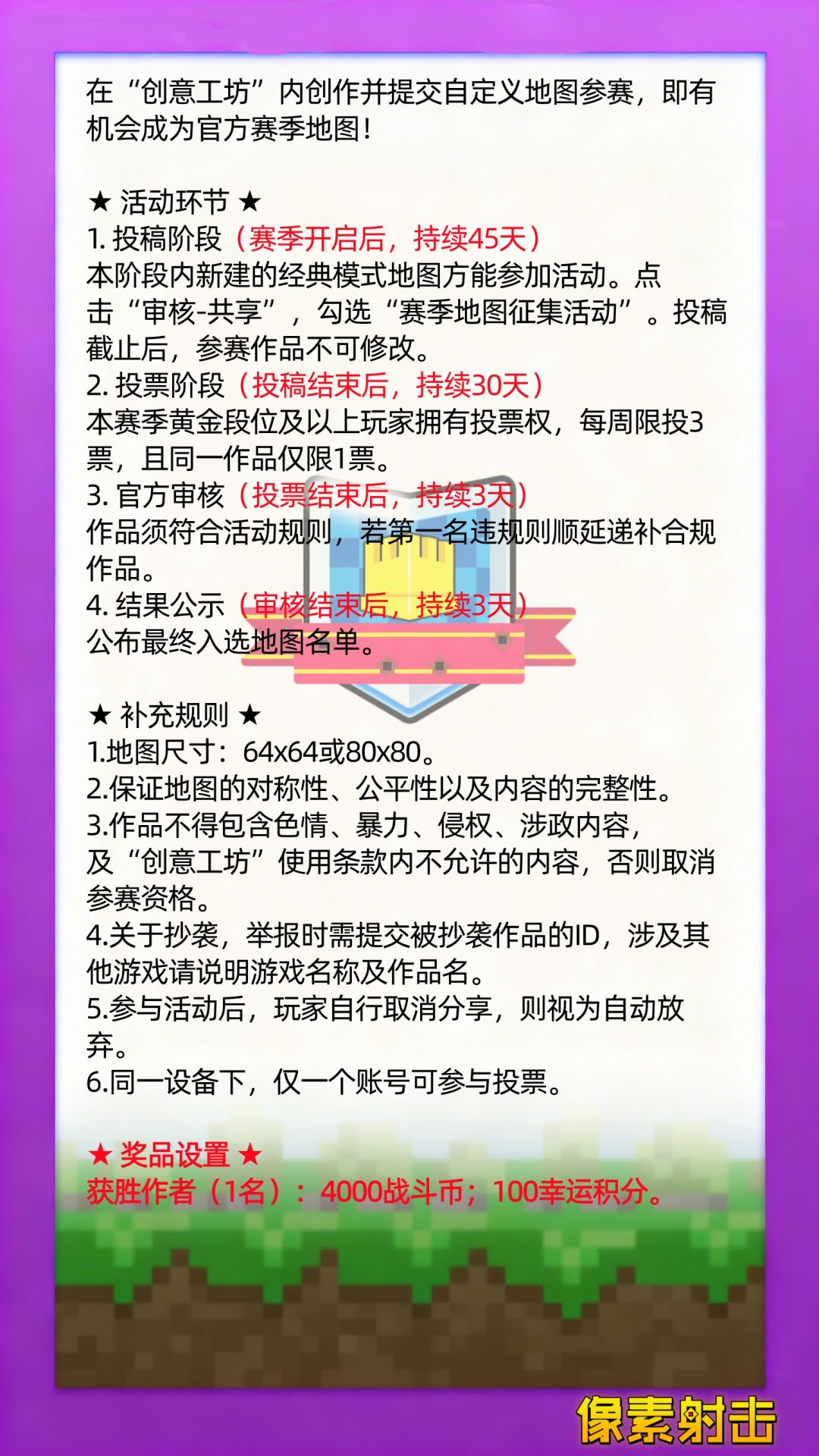 具体规则如图,不要忘记勾选“赛季地图征集活动”哦~