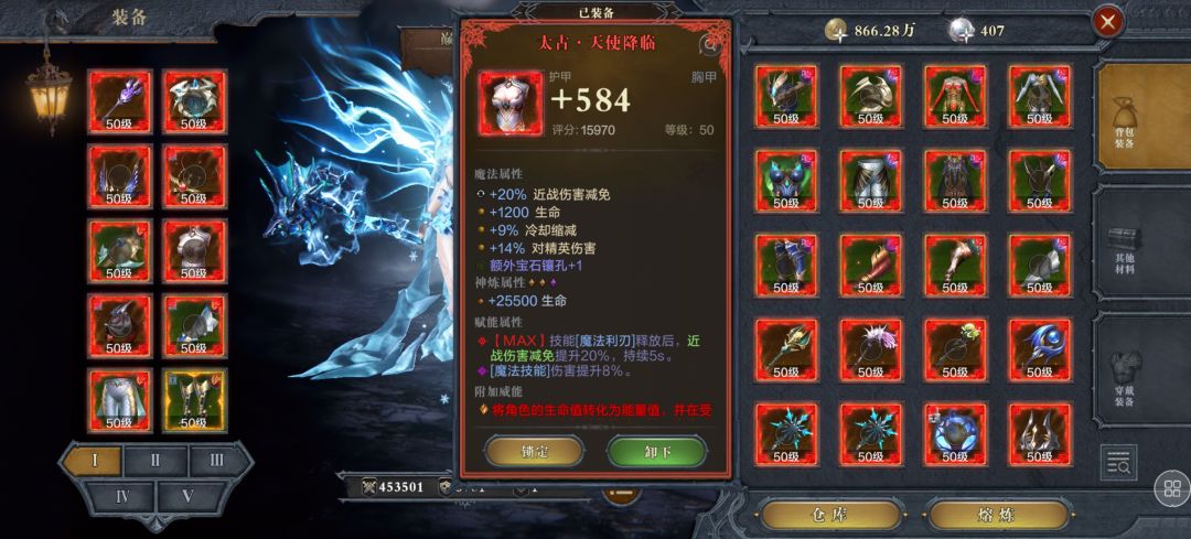 穿戴天使降临可以使炎魔戒指的加成和幻海头的加成不会冲突
