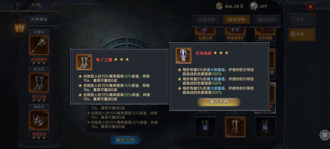 伤害足够可以带奥丁鞋子,跑的特别快。伤害不足就带星河裙。