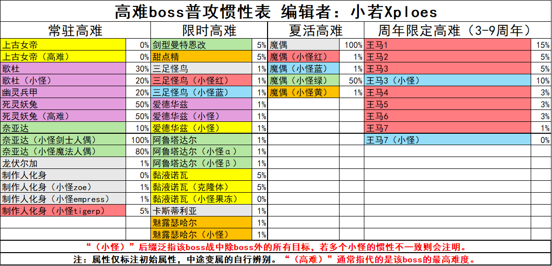 主线/活动/高难全定点boss的一般惯性参考
