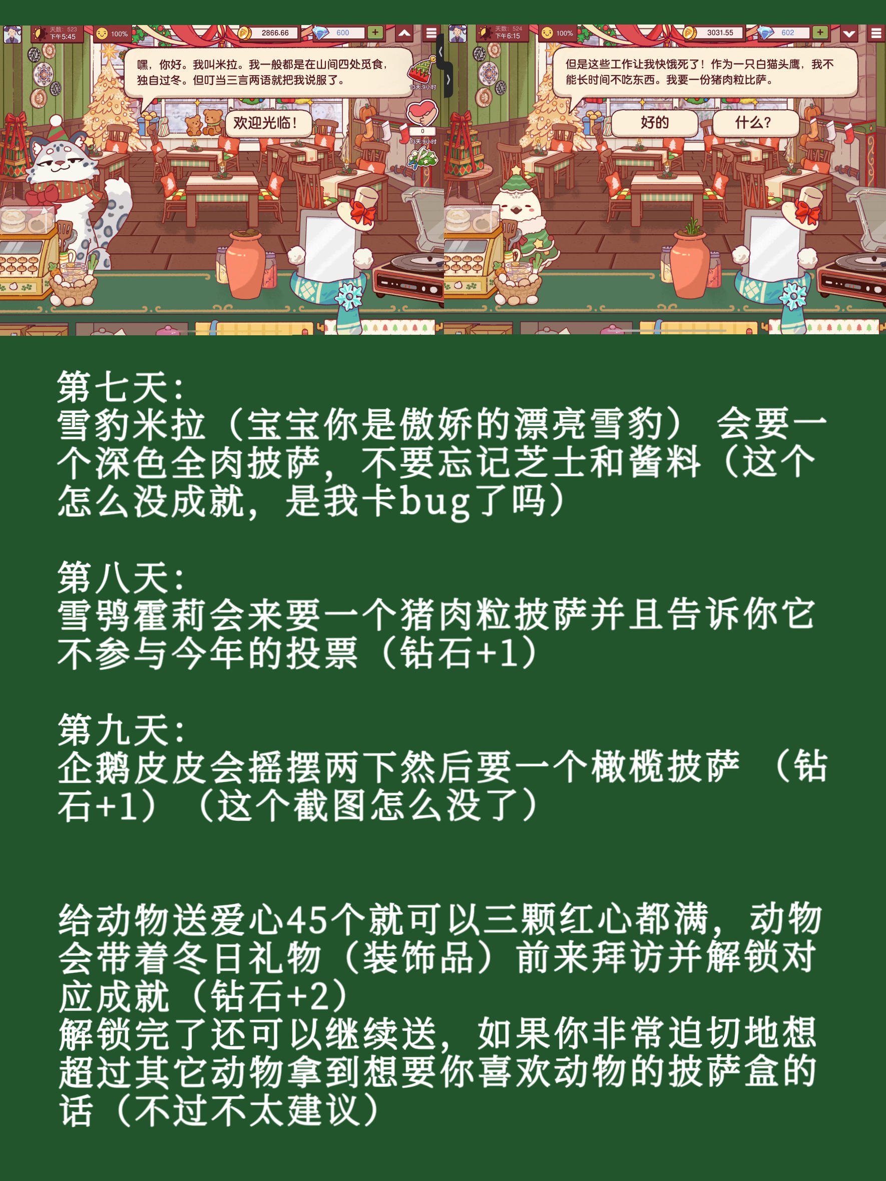 八个完美披萨会有两个爱心,五个顾客开心会有两个爱心,顾客会随机掉落,完成叮当的任务会有额外爱心,请自己规划好日程