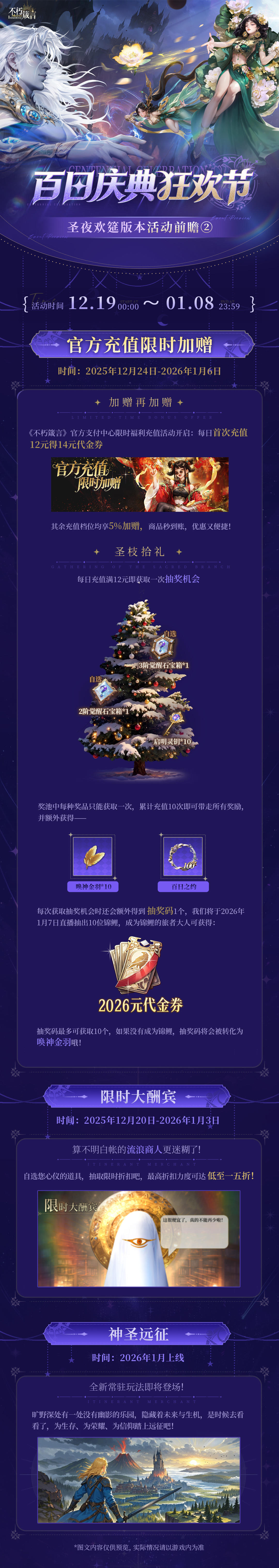 亲爱的旅者大人们晚上好,《不朽箴言》公测百日庆典狂欢节将于