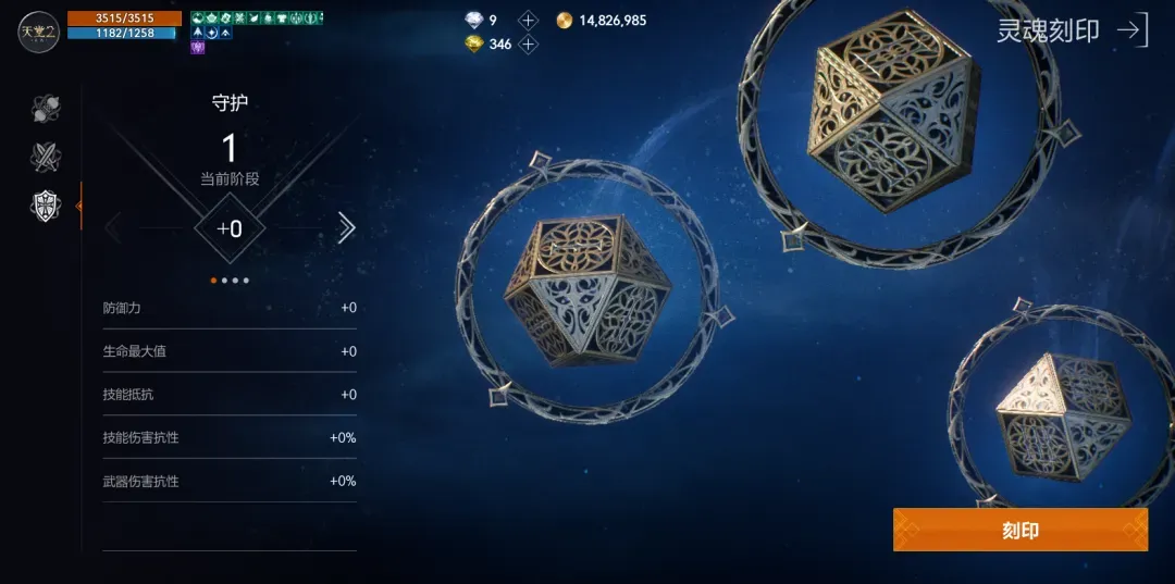 刻印系统的核心作用是提升大家在使用灵魂弹时的作战强度,以及人物在PVE和PVP作战时的属性强度。灵魂刻印分为灵魂弹、斗志以及守护三个模块,三个模块分别计算~