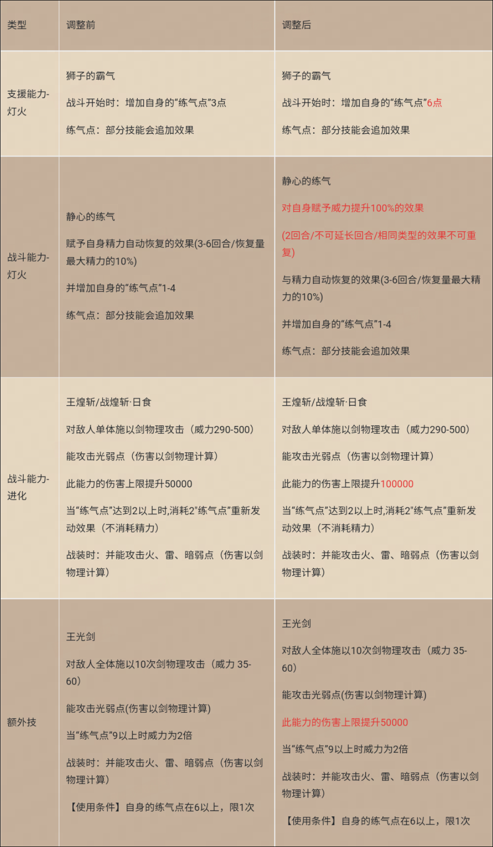 对本期追忆的英杰“艾丽卡”进行了性能调整,详情如下:
