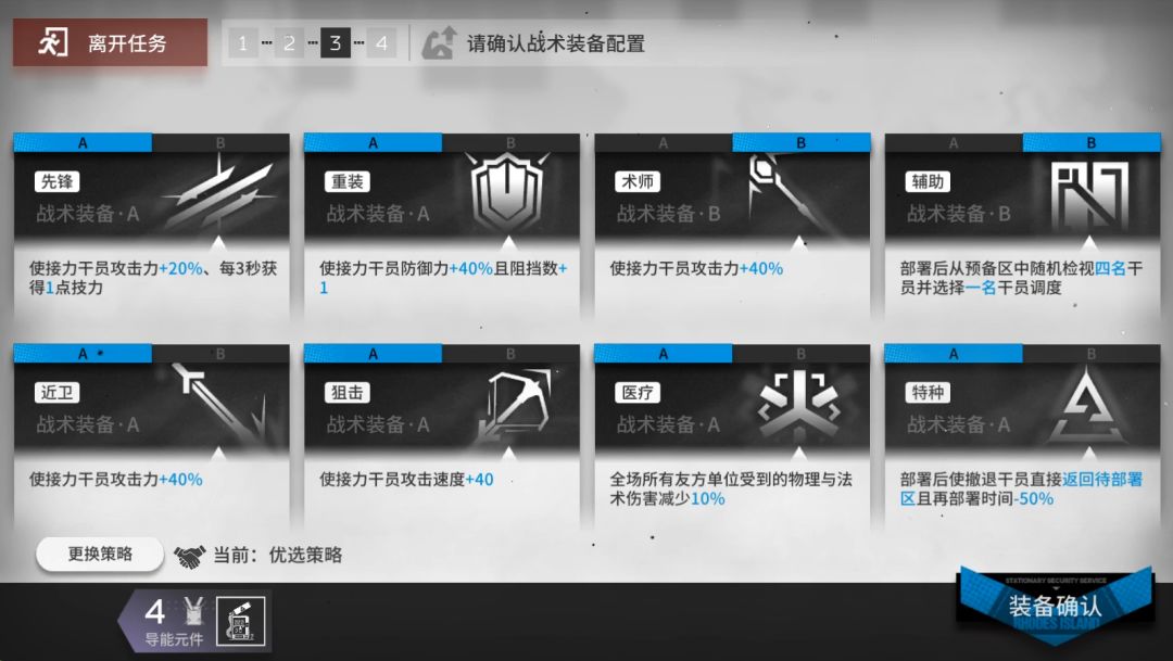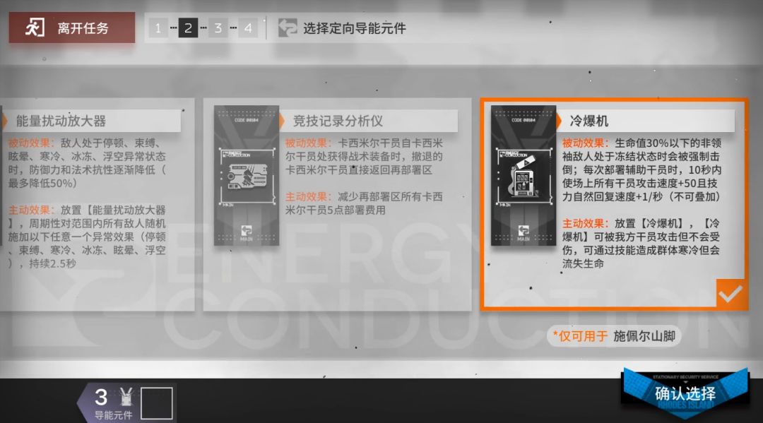 开局装置选第3个,但是选其他的也能过。但建议带一点高星干员。术士和辅助选第2个。其他选第一个。