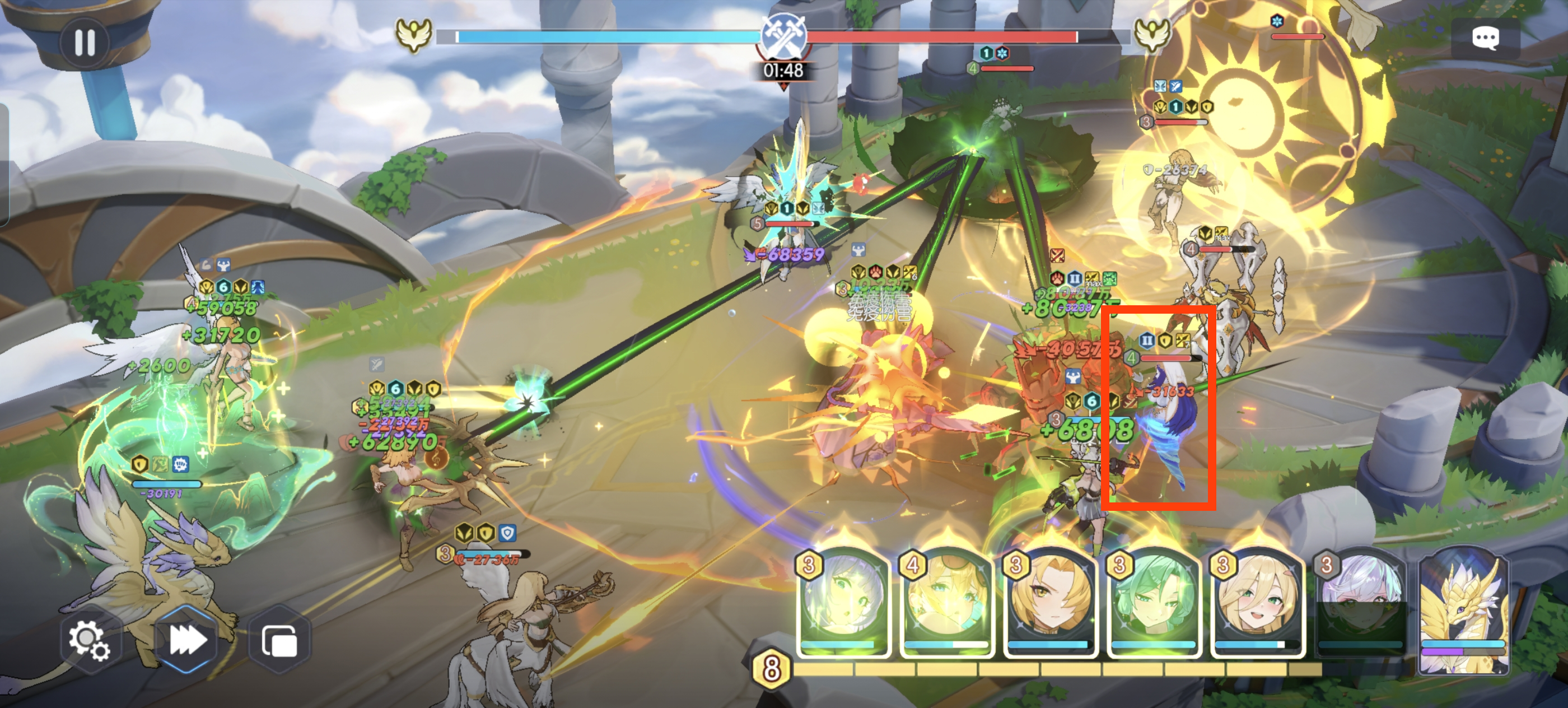 凛这个角色可以让阿波罗及大天使吃满遗言类的增益效果,同时不影响她们在光队吃恩赐祝福这个强力龙语buff,并且对阿波罗有很大的提升(实战中需要和凛的大招配合,才能让更多的箭矢打到挂二天刻印的目标)。