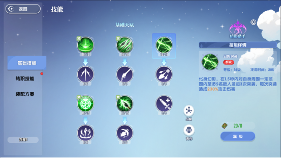 如果是PK方向的弓手,那我在技能选择上就略有不同,小编选择的是幻影突袭贯烈箭,凌云箭和分裂箭。幻影突袭是一个近战群攻技能,可以在1.5秒钟的持续时间内对周围的敌人发动多次突袭造成伤害,对于近战来说克制效果很好。贯烈箭当然是起手的首选,用于控制对方拉开距离。分裂箭的强化效果提升后能够使攻击到的目标降低攻击力,非常好用,最后凌云箭是基础伤害技能,控住对方后直接接凌云箭就可以。