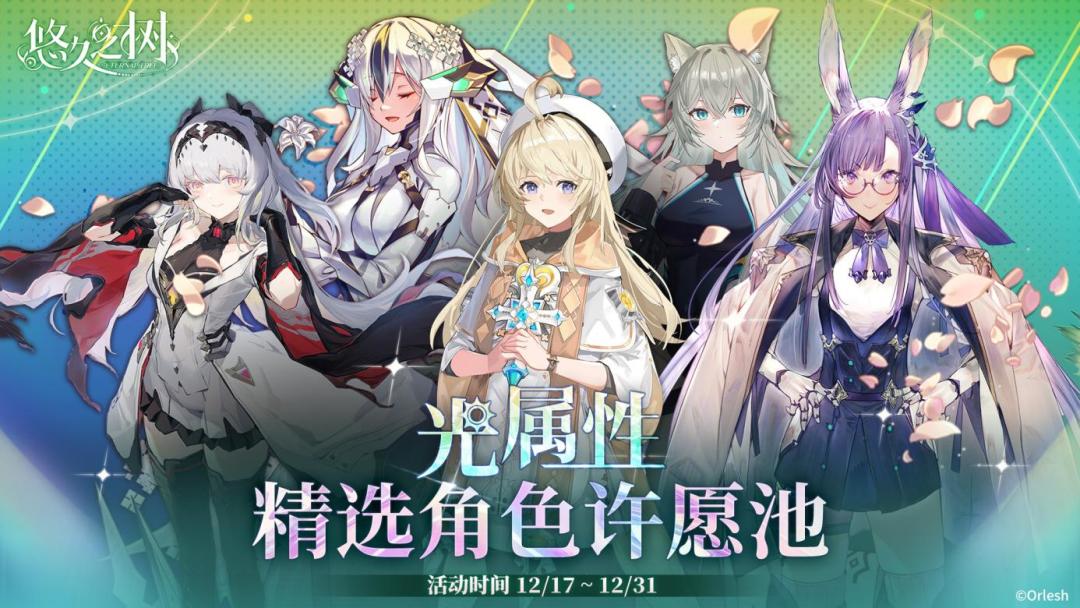 12月17日 维护后 - 12月31日 10:00,[纯洁圣歌]库诺、[银之花的淑女]瓦沙克、[唤醒之绊]阿尔泰米西娅、[夏日初战]兰、[逐星英桀]紫苑5位光属性角色限时回归,且邂逅概率大幅提升!