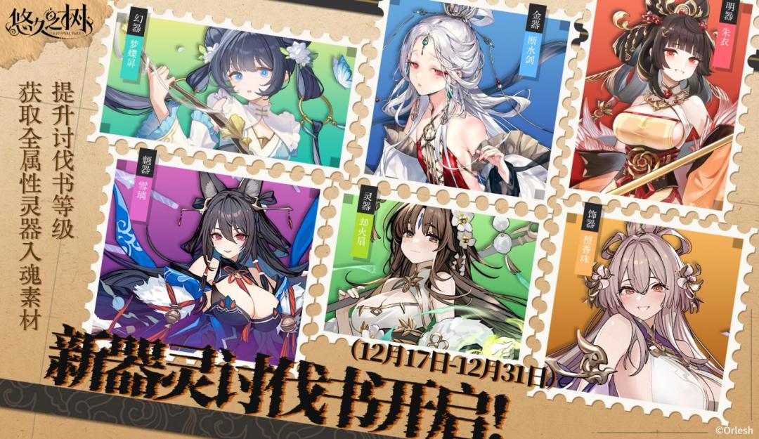 12月17日 维护后 - 12月31日 10:00,完成器灵讨伐日常周常任务可以获得讨伐积分。讨伐积分到达一定量时,可在「器灵讨伐书」界面领取大量全属性灵器入魂素材奖励!
