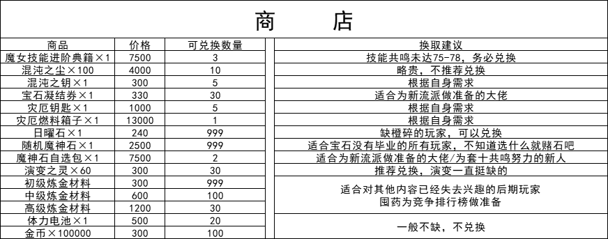 下面是矿区期间,体力使用参考与货币获取量参考表格: