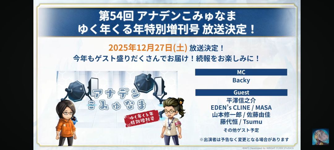 4)卫星角色剪影(龙岛弓?千代?),下次直播12月27日