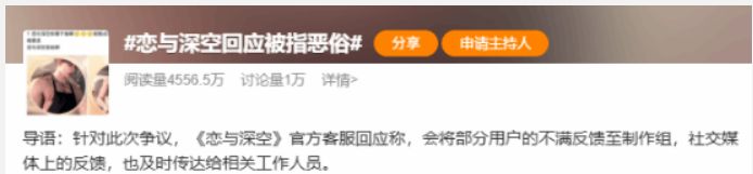 12月16日,国产热门乙游《恋与深空》因角色夏以昼的“慵懒共谋”宣传PV引发热议,#恋与深空恶俗 #话题登上微博热搜。