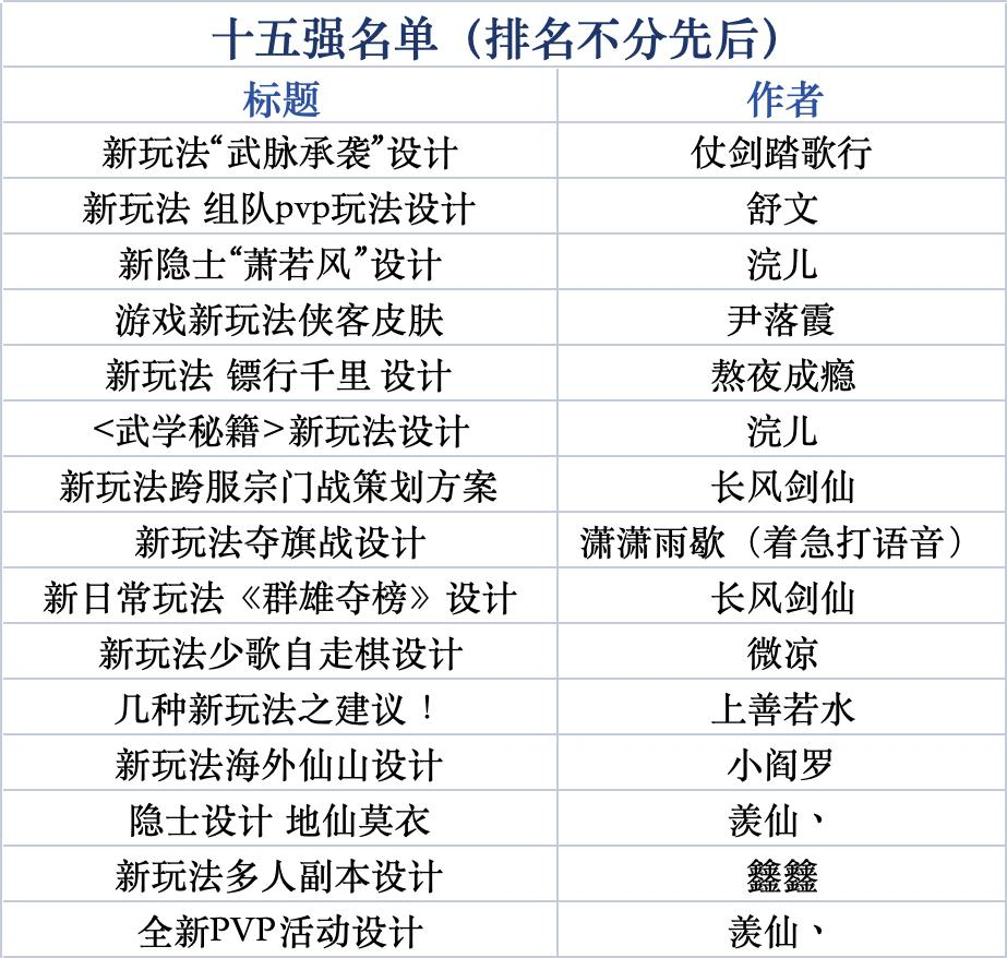 周年庆共创大赛十五强奖励:
