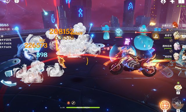 难点在于第三间的“机动战垒”,这个怪物开局就会开“高热”计数条,并开启全元素抗性150%,使用火元素角色攻击,就能够累积热度,就是怪物血条下面的小圈。