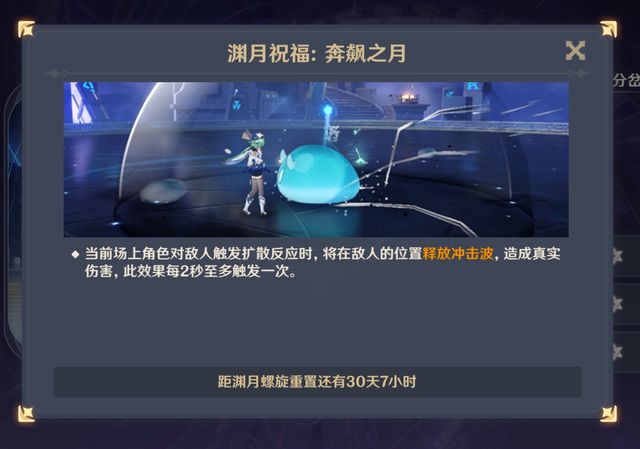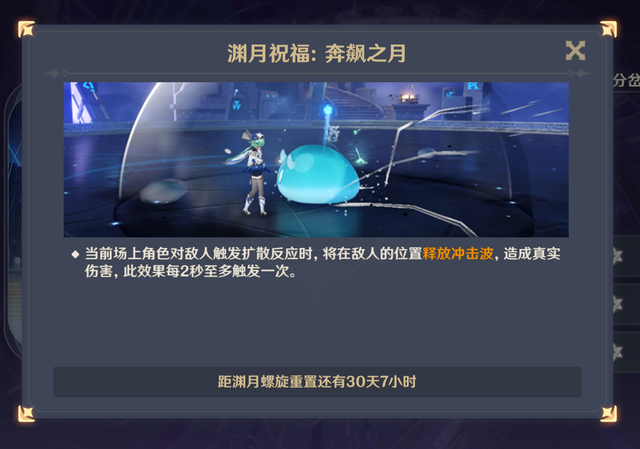 这期深渊说实话,可以说是进挪德卡莱数月,相较而言,比较简单的一期了,月渊祝福给的是触发扩散,就给一次带真实伤害的冲击波,可以说是白搭了。