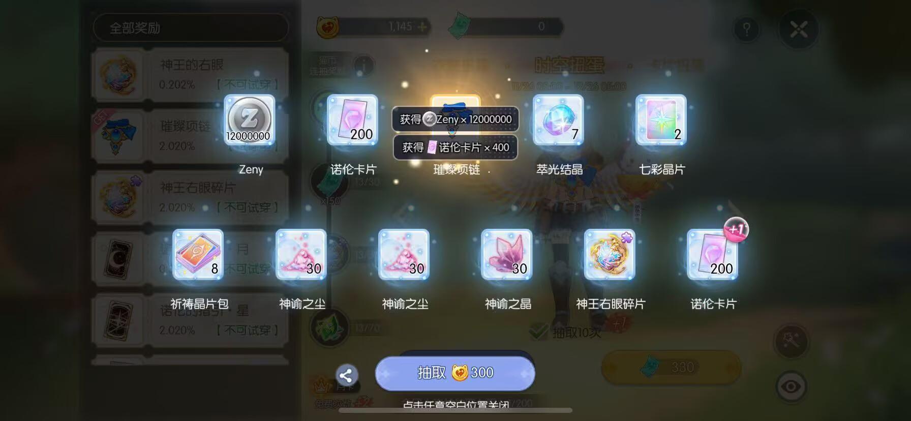 好吧,老实交代,我就是想晒晒围巾而已。虽然没白嫖到,但运气还可以,一个十连就抽到了