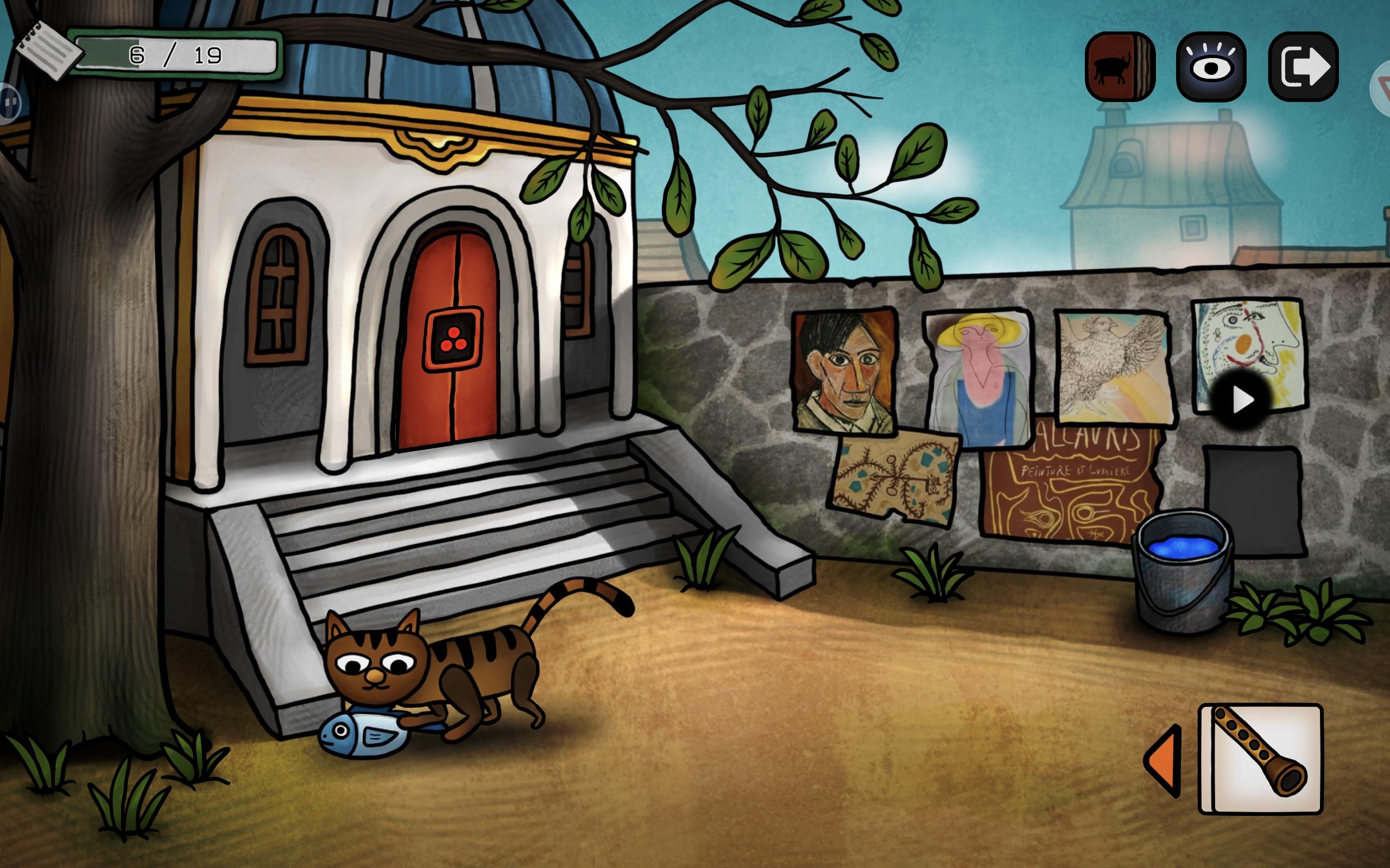 回到剧院大门口,用蝴蝶吸引小猫,得到鱼