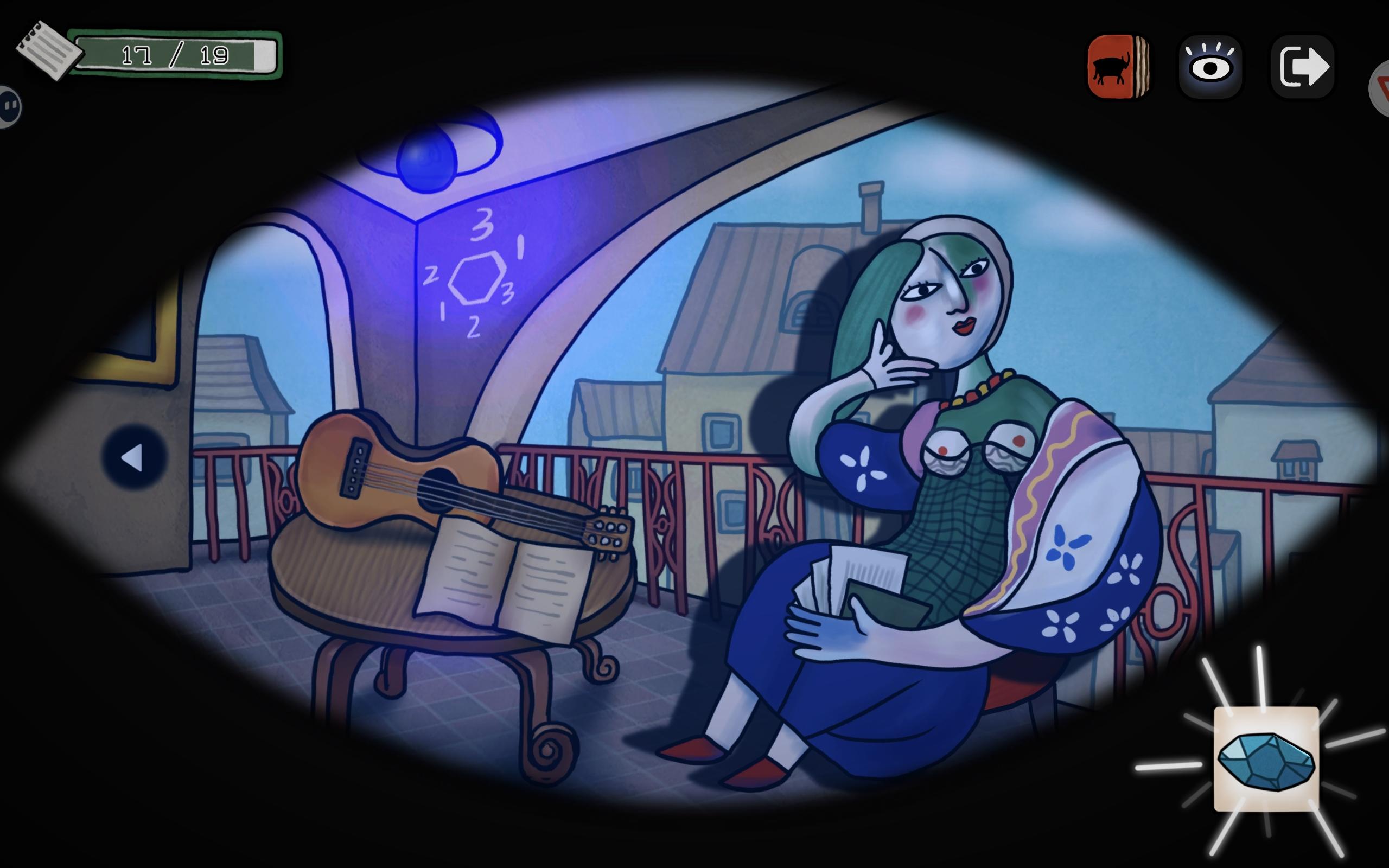 拼好后解锁【立体主义】成就,得到一块水晶,由对话得出需要拿水晶去看东西