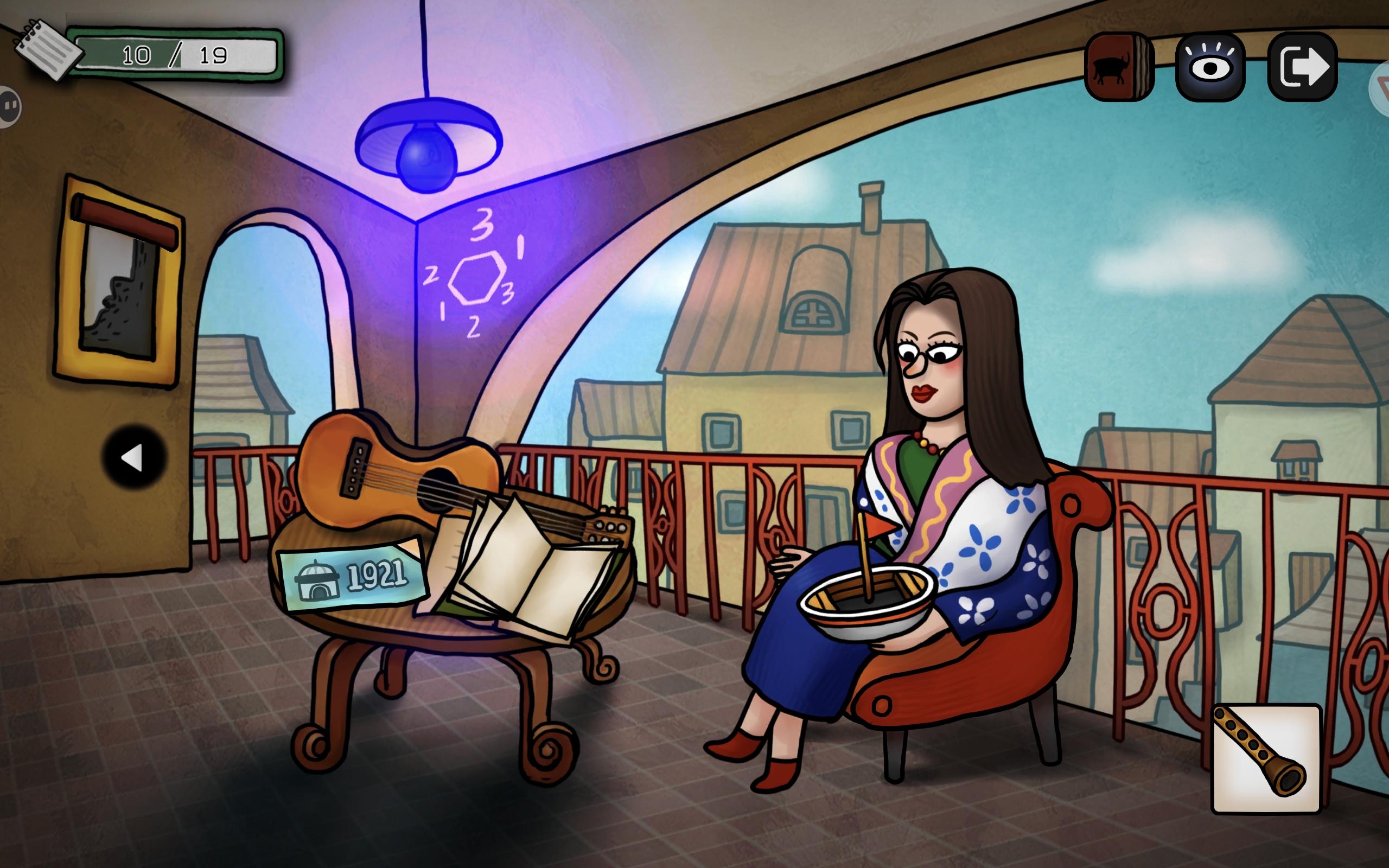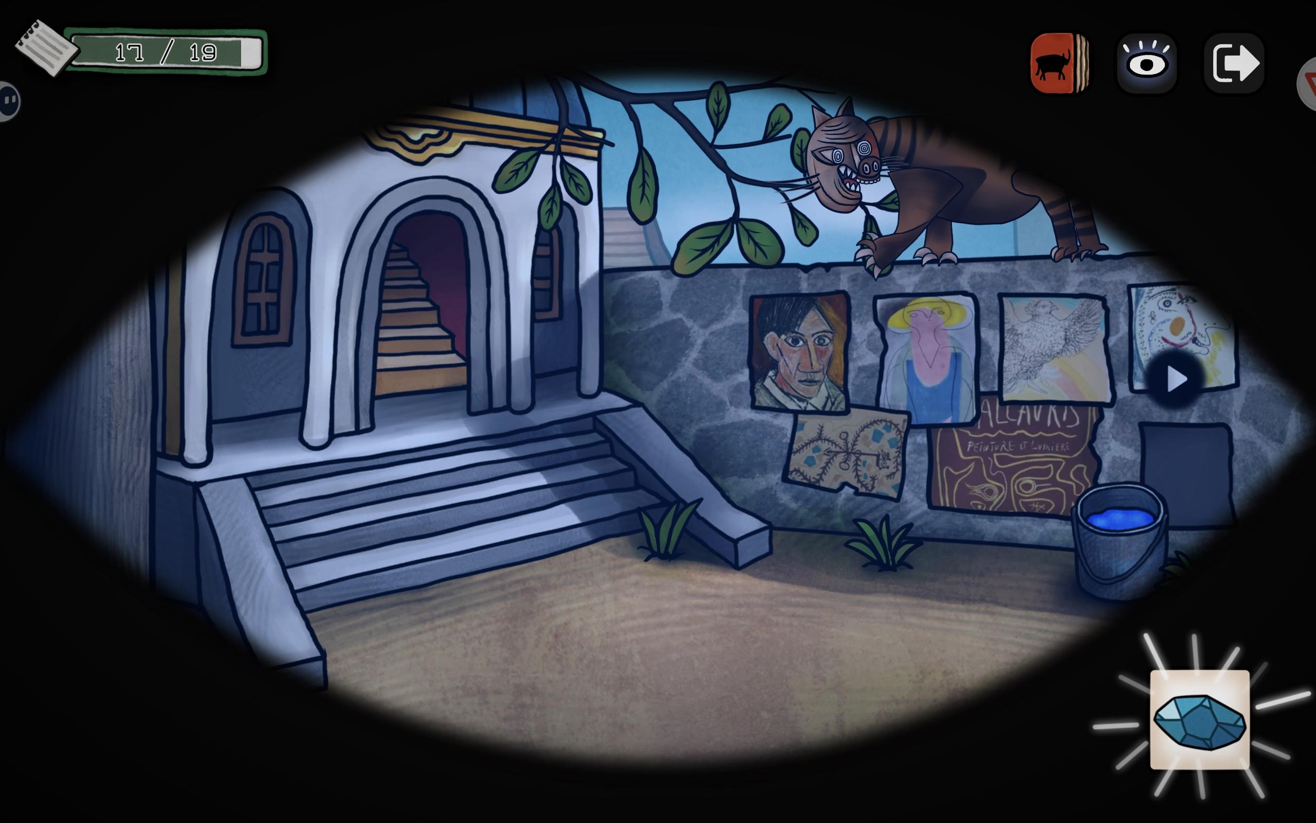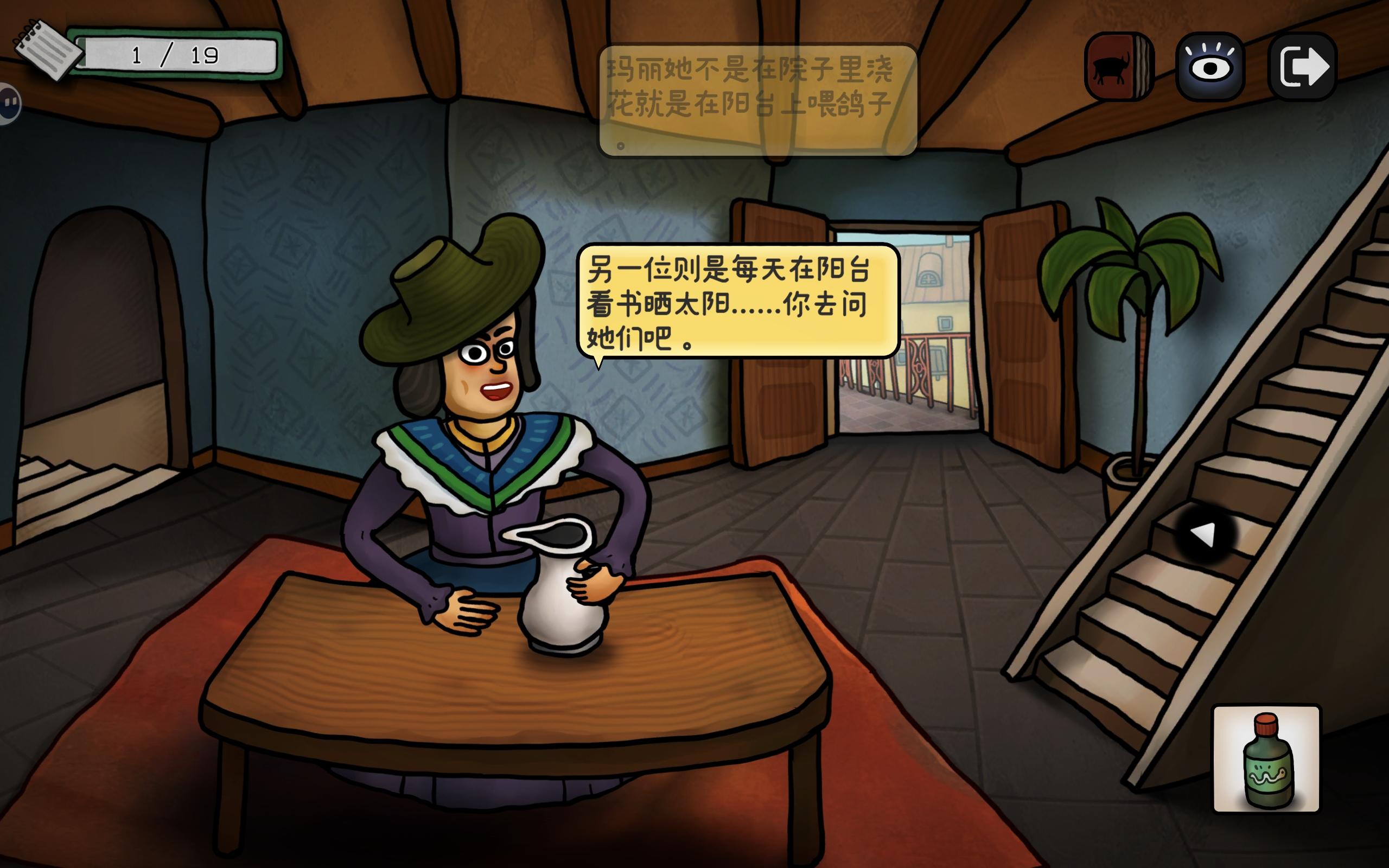 左键,看到阳台上的公牛,把画笔给它,出现铅笔气泡框